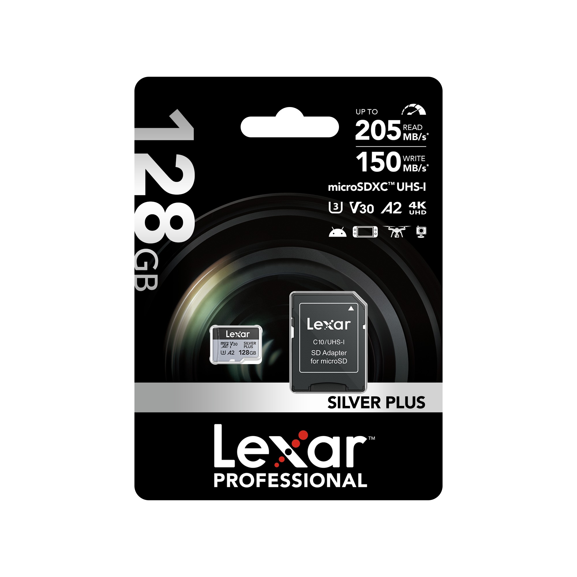 La carte Lexar Professional SILVER PLUS microSDXC™ UHS-I offre des vitesses allant jusqu’à 205 Mo/s en lecture et 150 Mo/s en écriture¹, pour vous aider à capturer de meilleures photos et vidéos et à accélérer votre flux de travail.